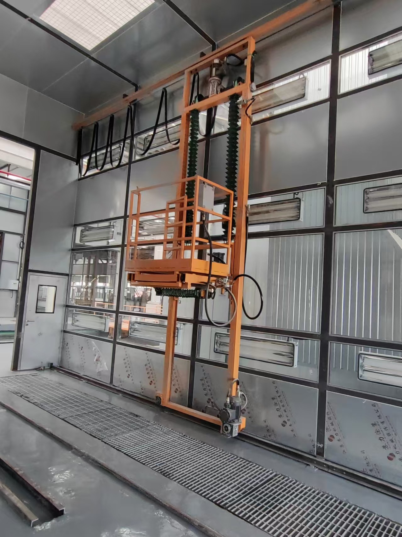 Resumo executivo: Chegue a todos os ângulos, em segurança.A pintura do telhado de um autocarro ou da parte superior da fuselagem de uma aeronave não deve envolver escadas ou andaimes perigosos.CoatTech 3 eixos elevador de homemÉ uma gaiola totalmente pneumática, montada na parede, que move o pintor em três dimensões:Esquerda/direita (X), para cima/para baixo (Y) e para dentro/para fora (Z)Proporciona uma plataforma estável e ergonómica que permite ao operador deslizar sem esforço em torno de peças de trabalho grandes, garantindo uma distância de pulverização consistente e uma qualidade de acabamento superior.