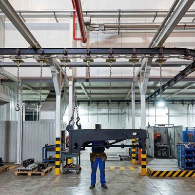Conforme demonstrado em nossas instalações, as robustas correntes de queda e os ganchos de carga projetados sob medida podem transportar com segurança e suavidade peças de trabalho pesando várias toneladas, mantendo o espaço do piso totalmente livre e eliminando a necessidade de carrinhos de solo volumosos.